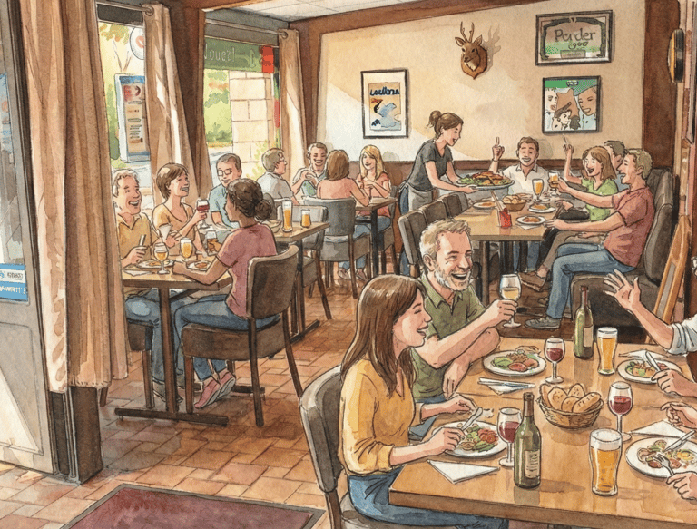 Pour les passionnés, un espace dédié en retrait de la salle de restaurant vous accueille pour le PMU et la FDJ. Profitez d’un coin tranquille avec écran pour suivre le quinté et le course par course en toute sérénité.